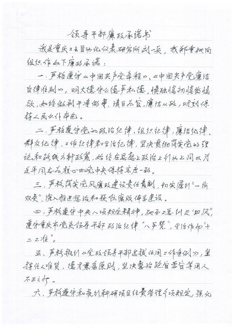 刘一兵廉政承诺书
