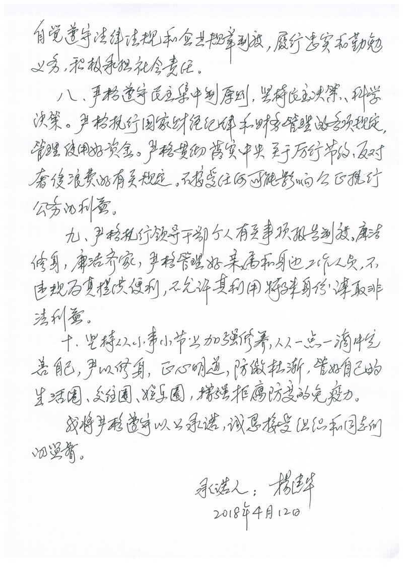 杨建华廉政承诺书