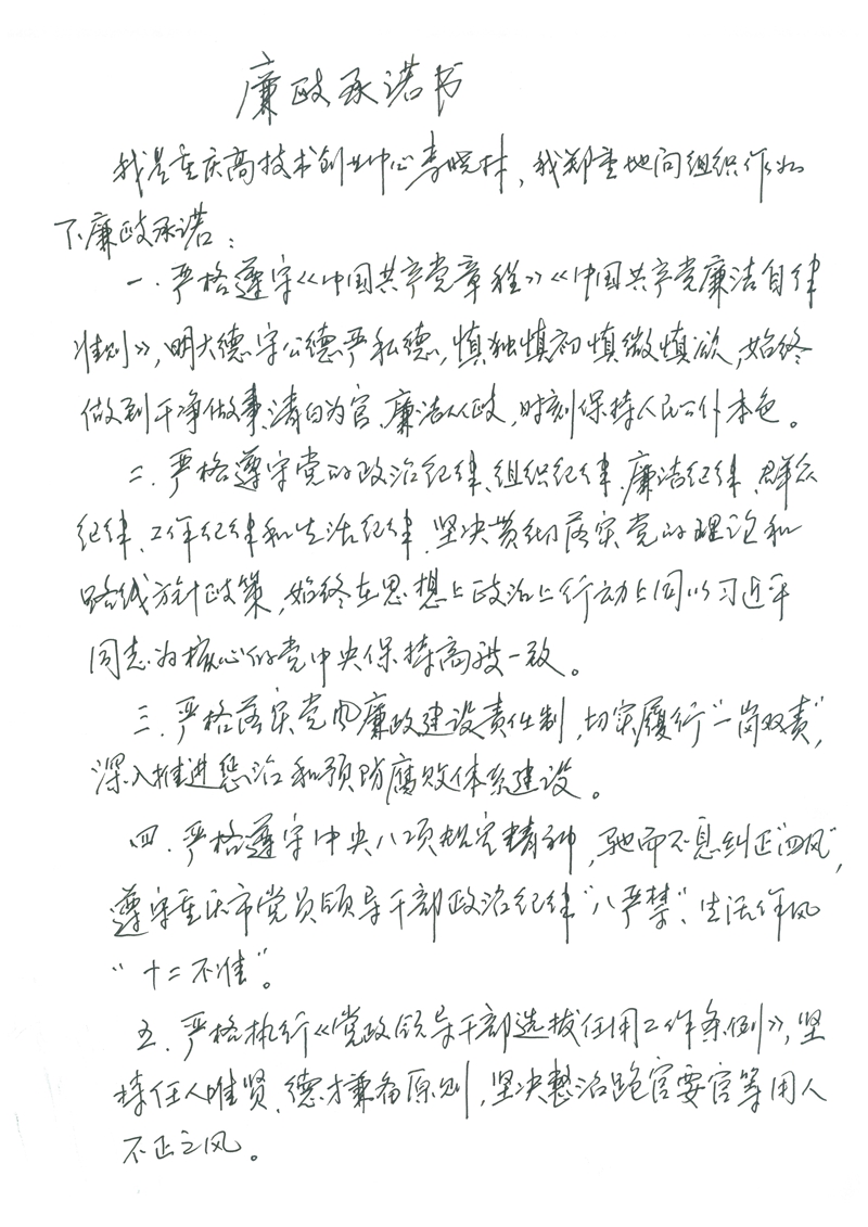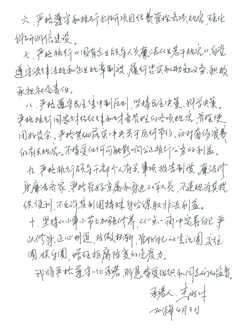 李晓林廉政承诺书