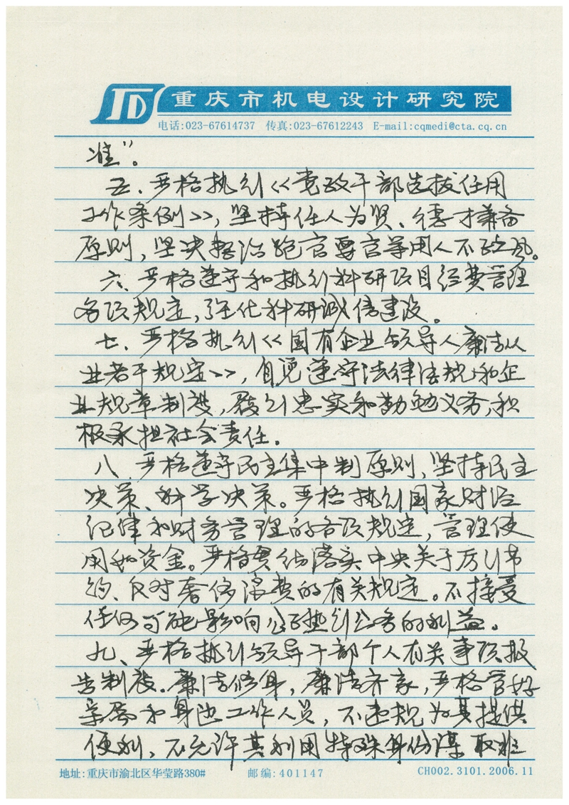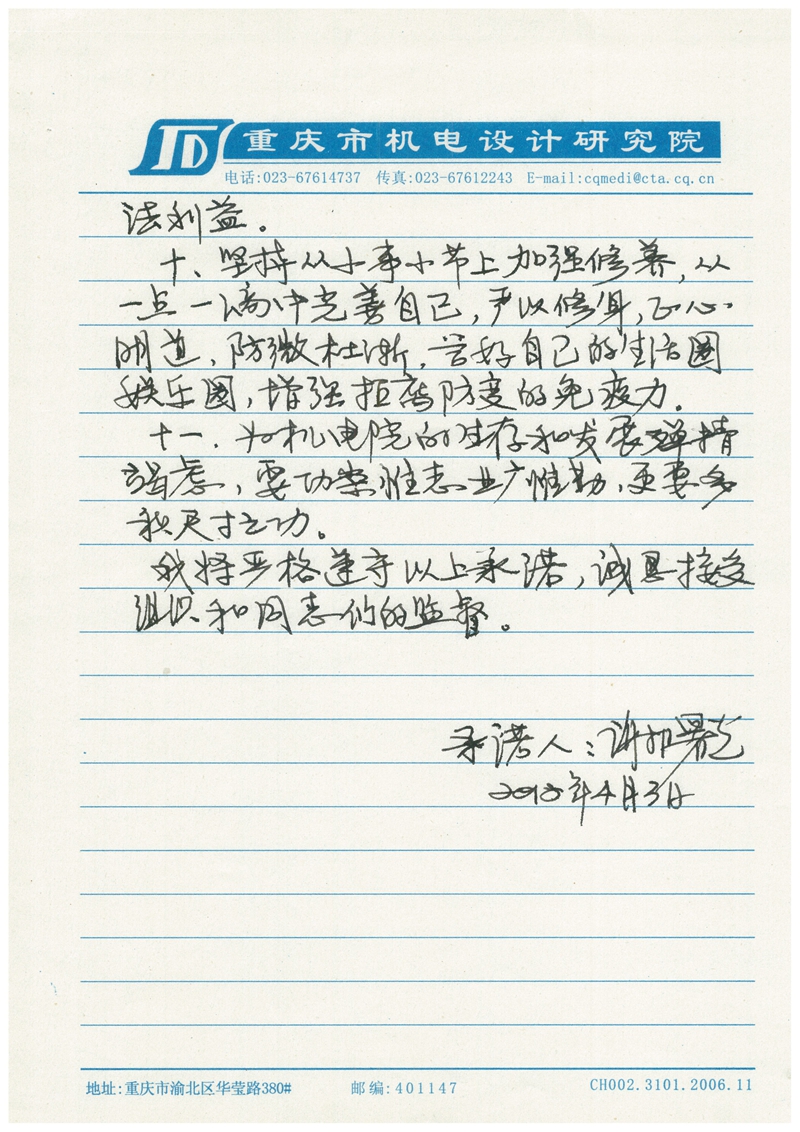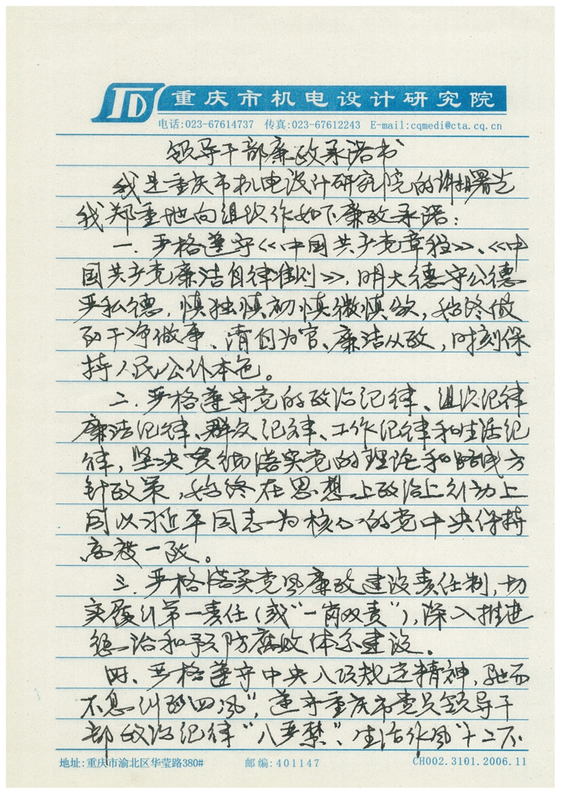 谢曙光廉政承诺书