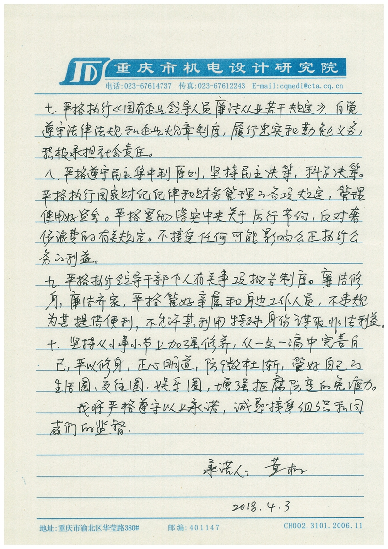 黄梅廉政承诺书