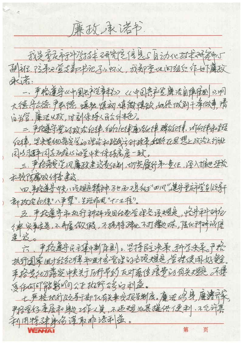 孙怀义廉政承诺书