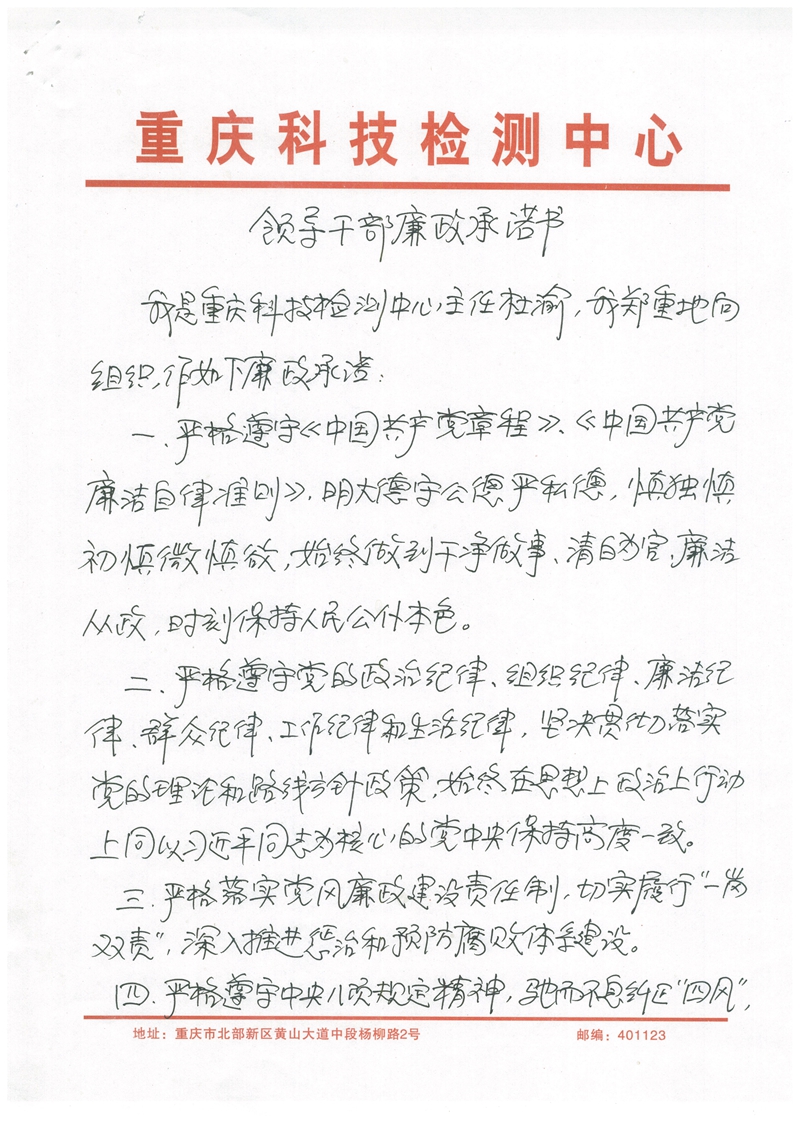 杜渝廉政承诺书