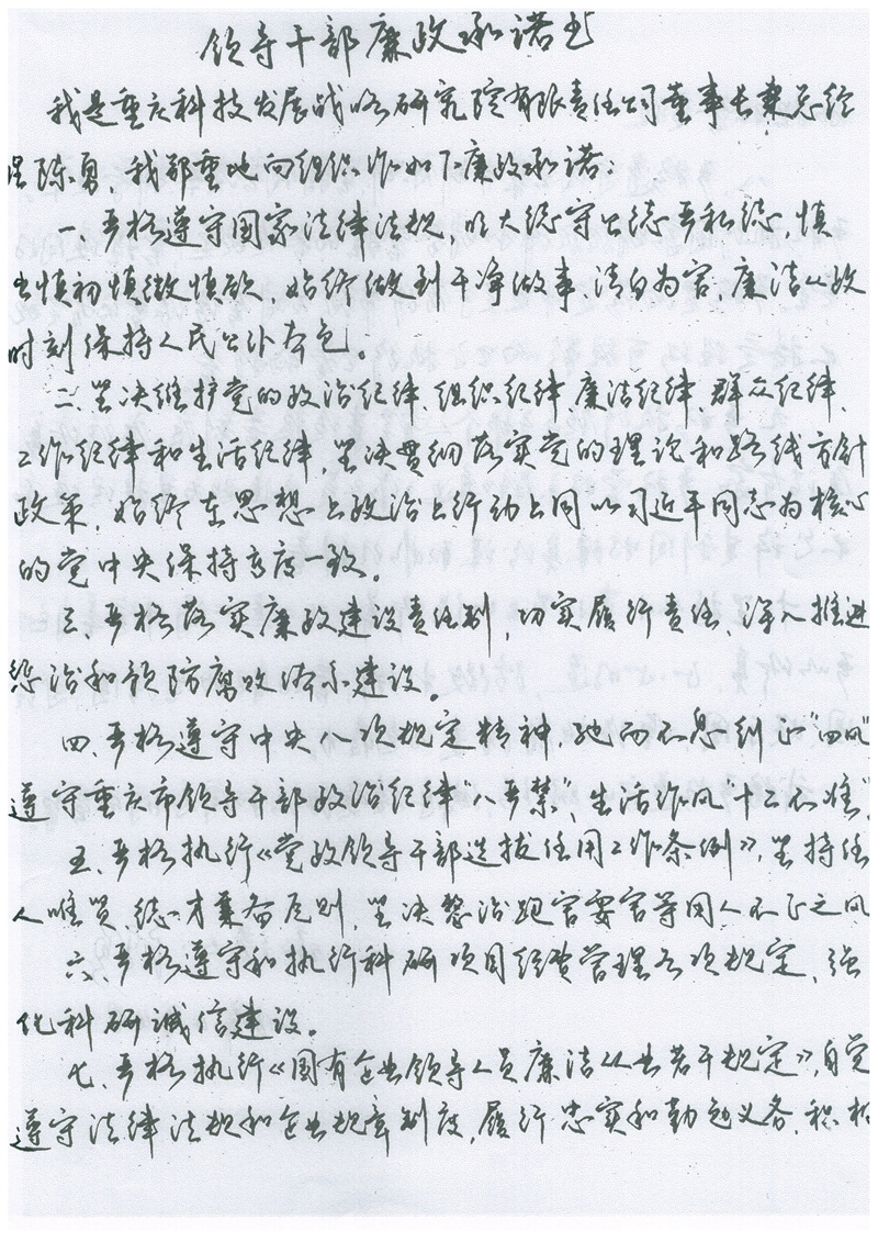 陈勇廉政承诺书