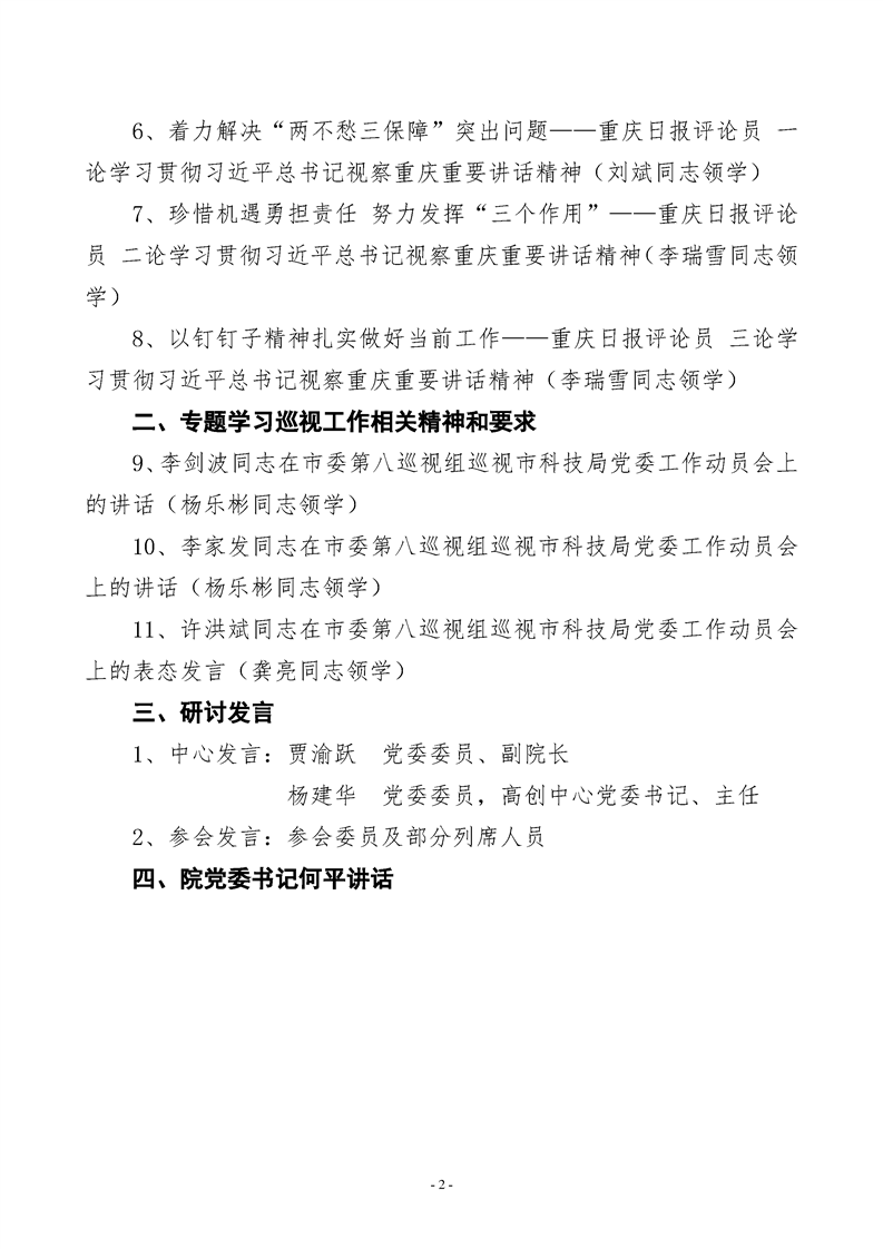 重科院党委2019年第5次理论学习中心组(扩大)学习会会议议程