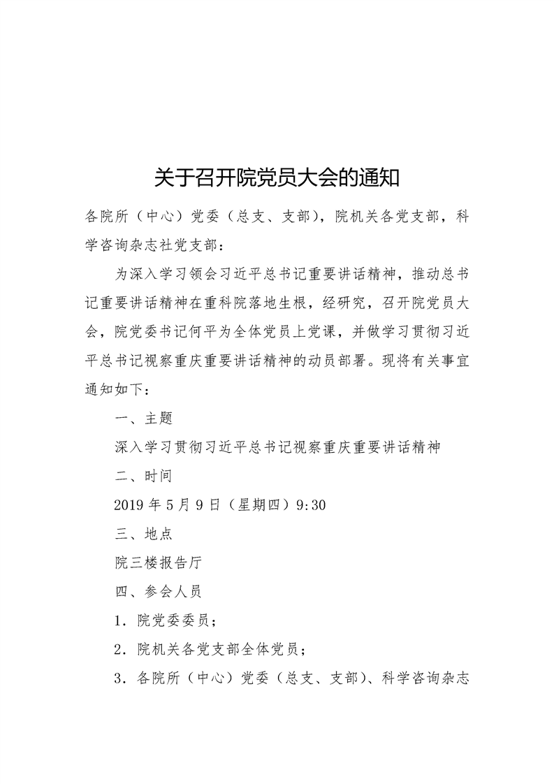 关于召开院党员大会 (党课、动员部署会)的通知
