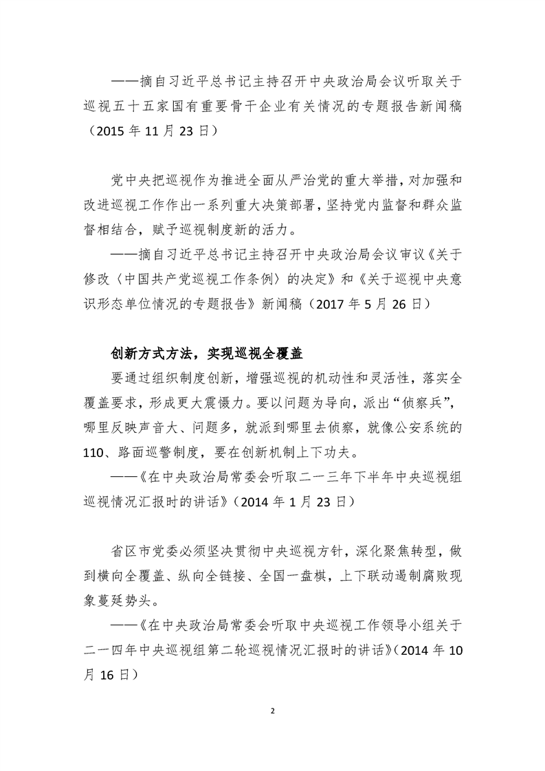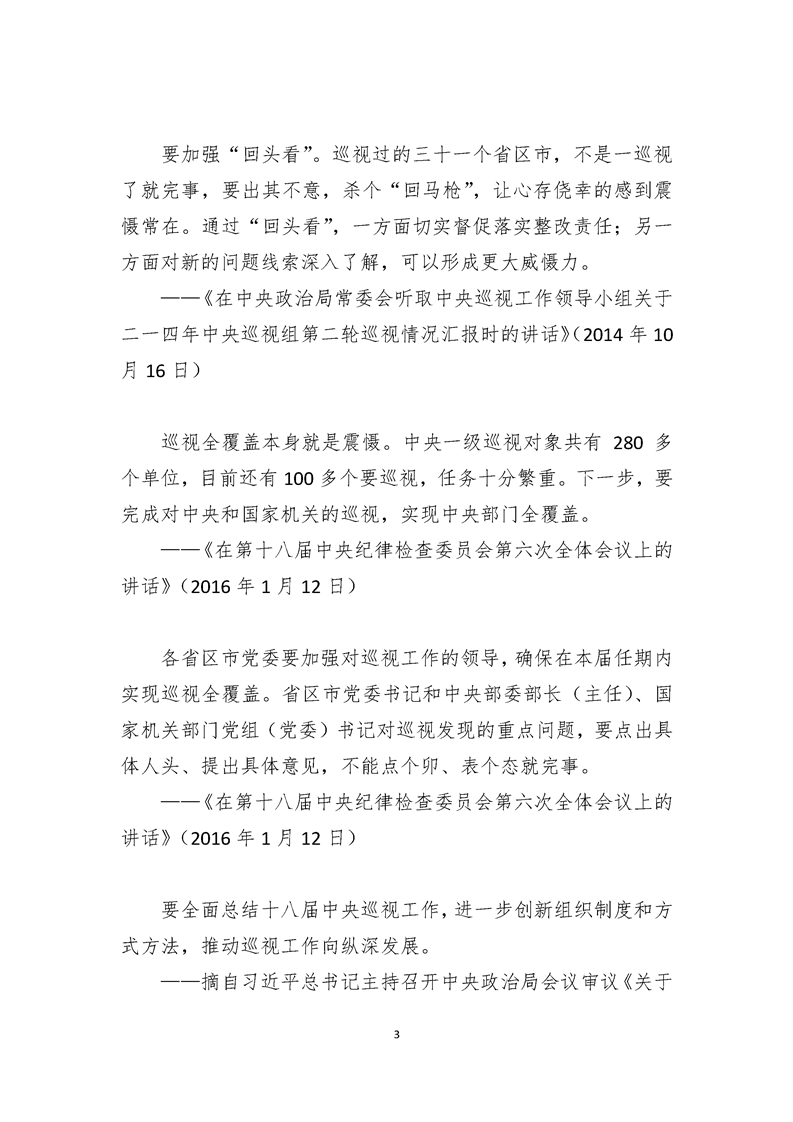 习近平总书记关于推动巡视工作向纵深发展重要论述摘录