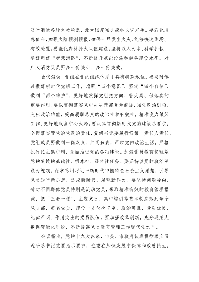 市委常委会召开会议 认真贯彻习近平总书记重要批示精神 扎实做好森林防火各项工作