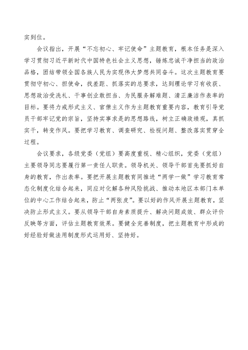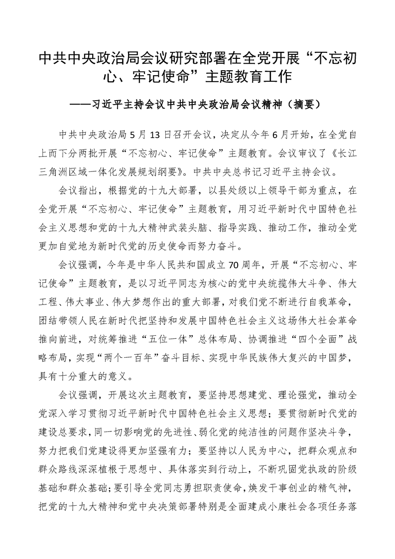 中共中央政治局会议研究部署在全党开展“不忘初心、牢记使命”主题教育工作——习近平主持会议中共中央政治局会议精神