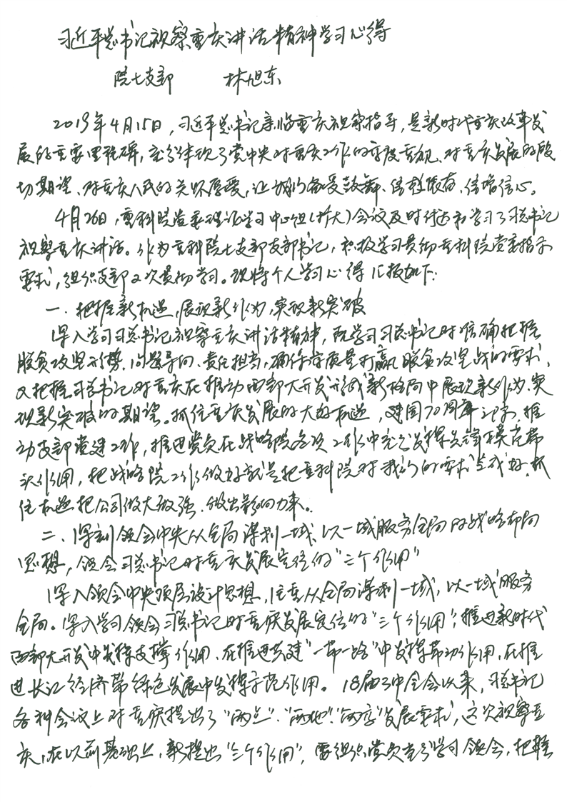 习近平总书记视察重庆讲话精神学习心得 - 林旭东