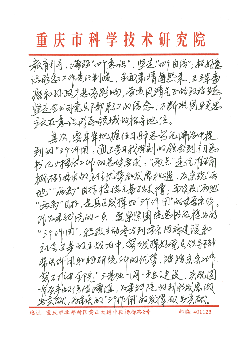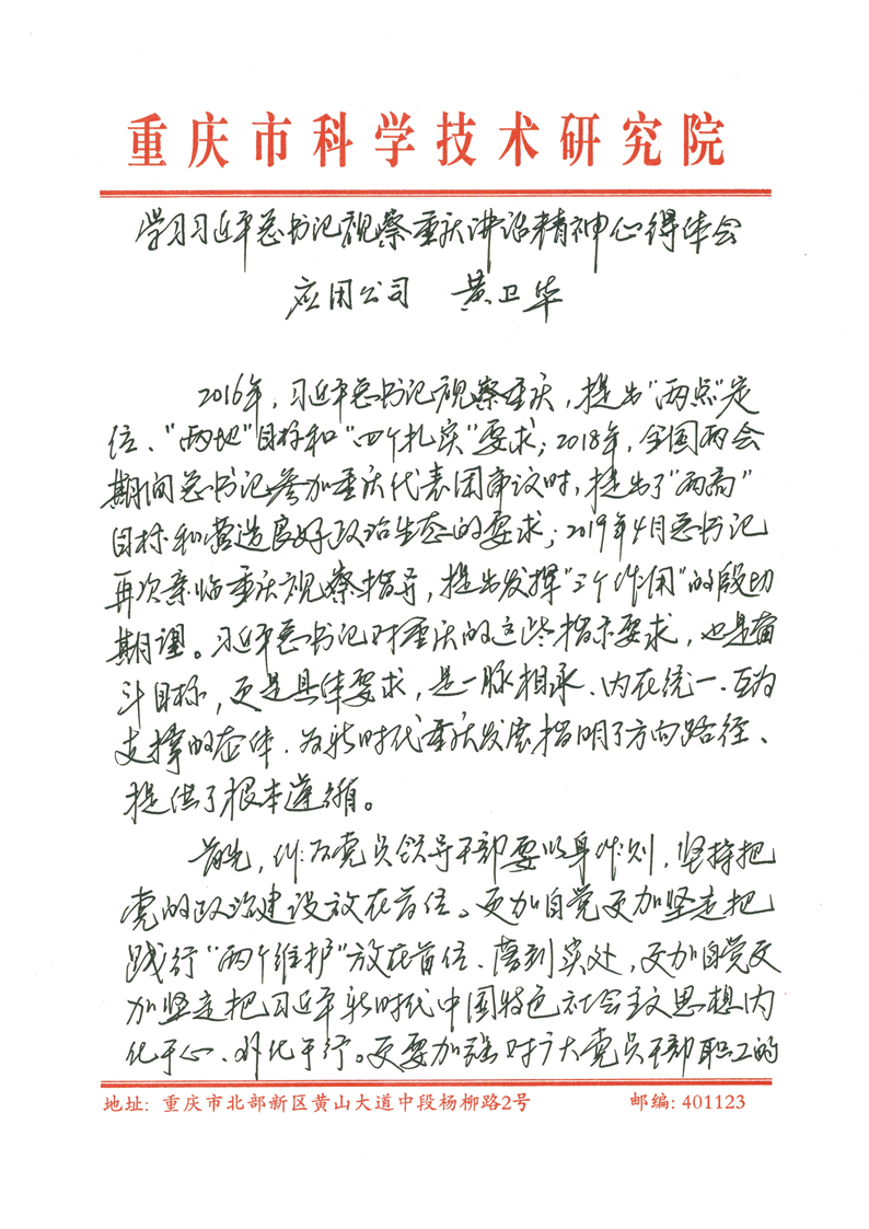 学习习近平总书记视察重庆讲话精神心得体会 - 黄卫华