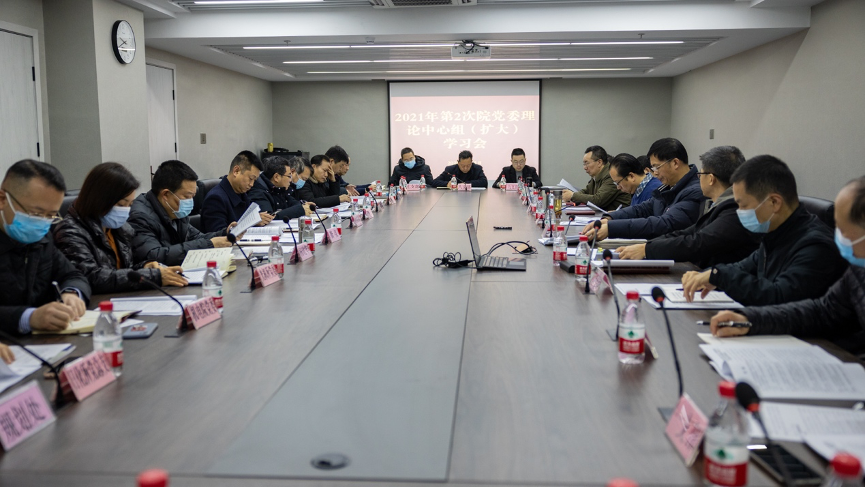 2月5日,何平书记在重科智谷C座12楼三会议室主持召开院党委2021年第2次理论学习中心组(扩大)学习会。院党委副书记、院长梁震,院党委委员刘斌、李瑞雪、曾学东、杨乐彬、龚亮、石祥聪、杨建华,院属各单位党组织负责人,院机关各党支部书记,各处室(中心)和院属各单位班子成员参会。市纪委监委驻市科技局纪检监察组组长刘骁华,市科技局机关党委专职副书记李军锋,驻市科技局纪检监察组调研员、纪检监察员万志忠到会指导。曾学东、杨乐彬、杨建华3位同志中心发言,刘万伟、于明政、李政刚3位同志即席发言。