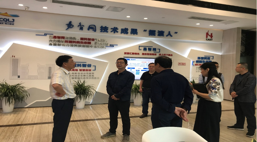 近日,中国科学院重庆绿色智能技术研究院袁家虎院长一行三人来院调研易智网和技术转移工作并参观易智网服务大厅。院党委书记何平会见来宾,副书记、院长梁震陪同参观并参与座谈,院智谷办、合作办、评估中心、信息中心相关负责人参会。