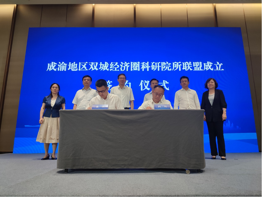6月22日,推动成渝地区双城经济圈科技协同创新专项工作组第四次会议在绵阳举行。会上,重庆市科研院所协会、四川省科研单位院所长协会分别代表川渝科研院所进行签约,联合发起成立成渝地区双城经济圈科研院所联盟,四川省科技厅厅长吴群刚、重庆市科技局局长明炬等领导见证签约。