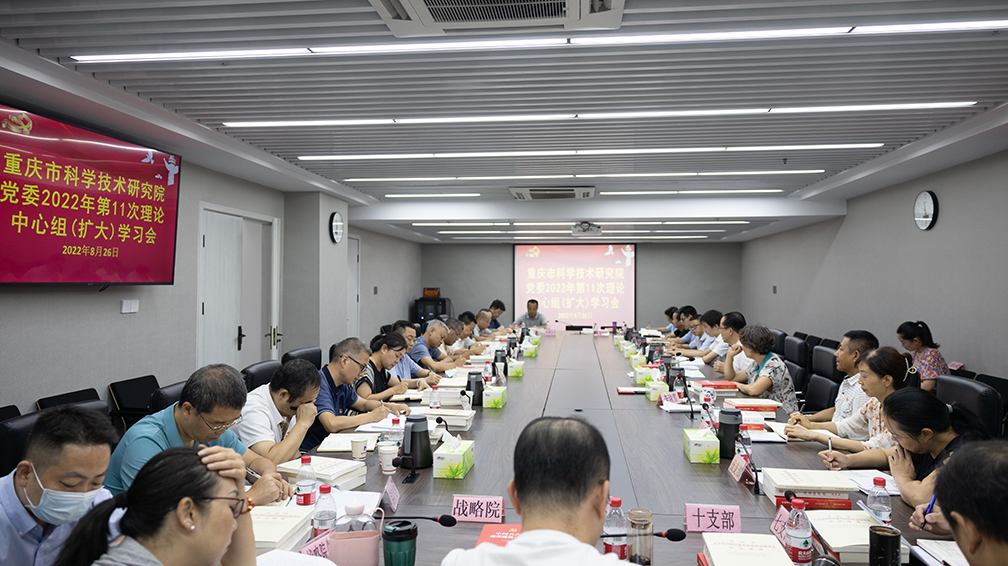 8月26日,院党委在重科智谷C座12楼三会议室主持召开院党委2022年第11次理论中心组(扩大)学习会。党委书记何平主持会议并讲话,党委副书记、院长雷虹出席会议,党委委员李瑞雪、曾学东,院属各单位党组织负责人,院机关各党支部书记,院属各单位行政主要负责人,各处室、研究中心(院)副职以上领导干部参会。雷虹、李政刚两位同志中心发言,曾学东、杨建华、沈丹、赵德同志即席发言。