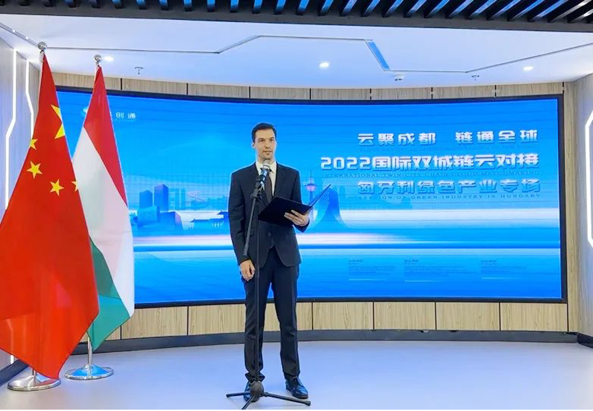 10月27日,由成都市科学技术局(成都市外国专家局)主办,院高创中心公司(中匈技术转移中心)与成都生产力促进中心(成都市国际科技交流中心)共同承办,成都数字媒体产业化基地有限公司、重庆国际科技合作协会协办的“2022国际双城链云对接匈牙利绿色产业专场活动”成功举办。匈牙利驻重庆总领事馆总领事葛凯达(Gergely Kádár)、成都市科学技术局副局长陈旭出席活动并致辞,共计3.2万余人次在线观看了本次直播。
