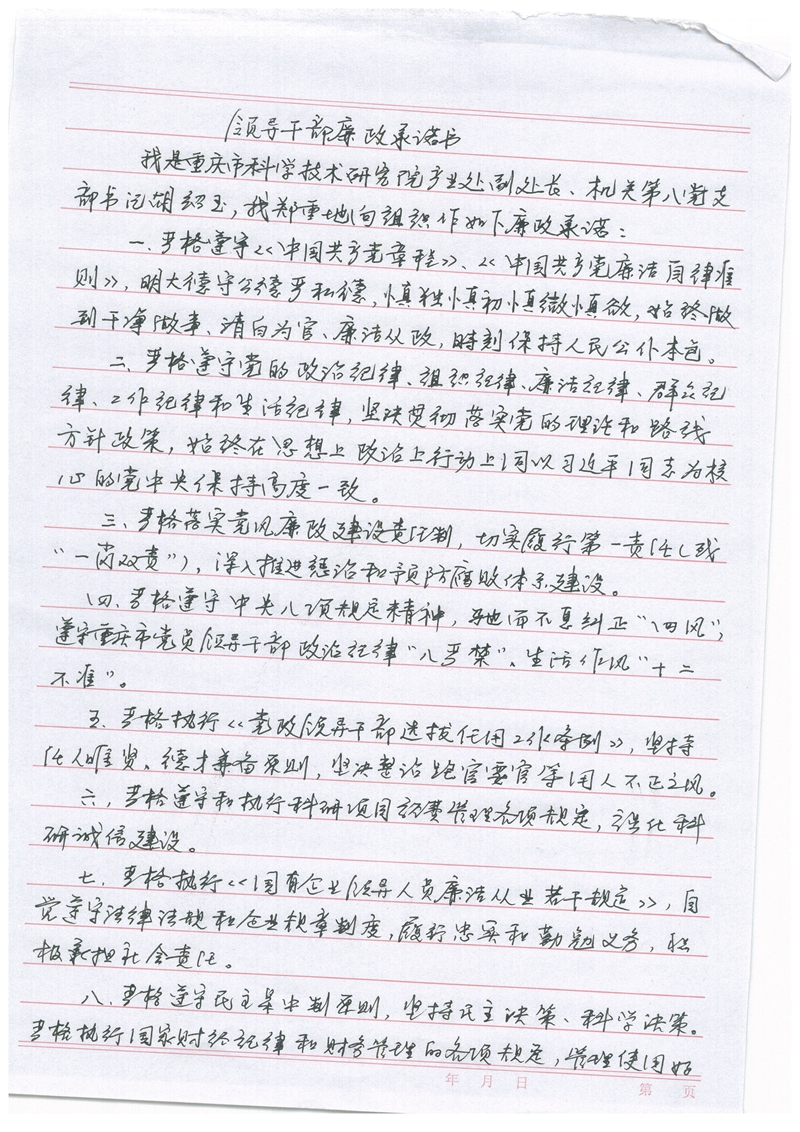 胡绍玉廉政承诺书