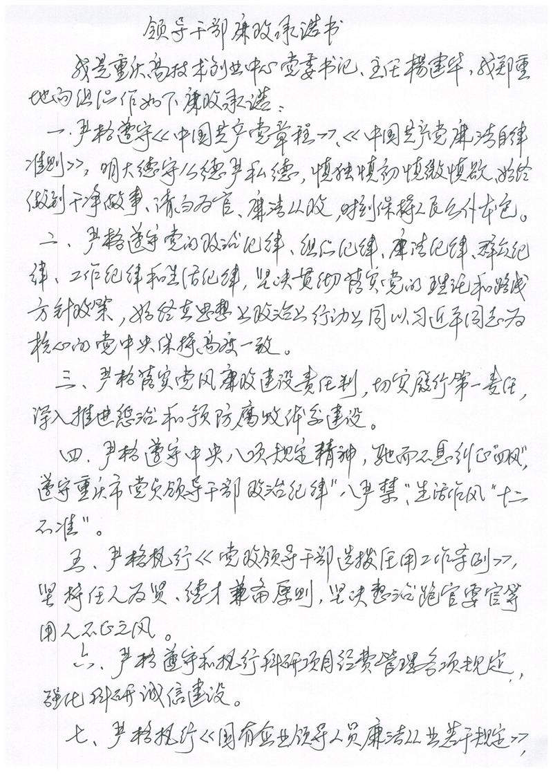 杨建华廉政承诺书