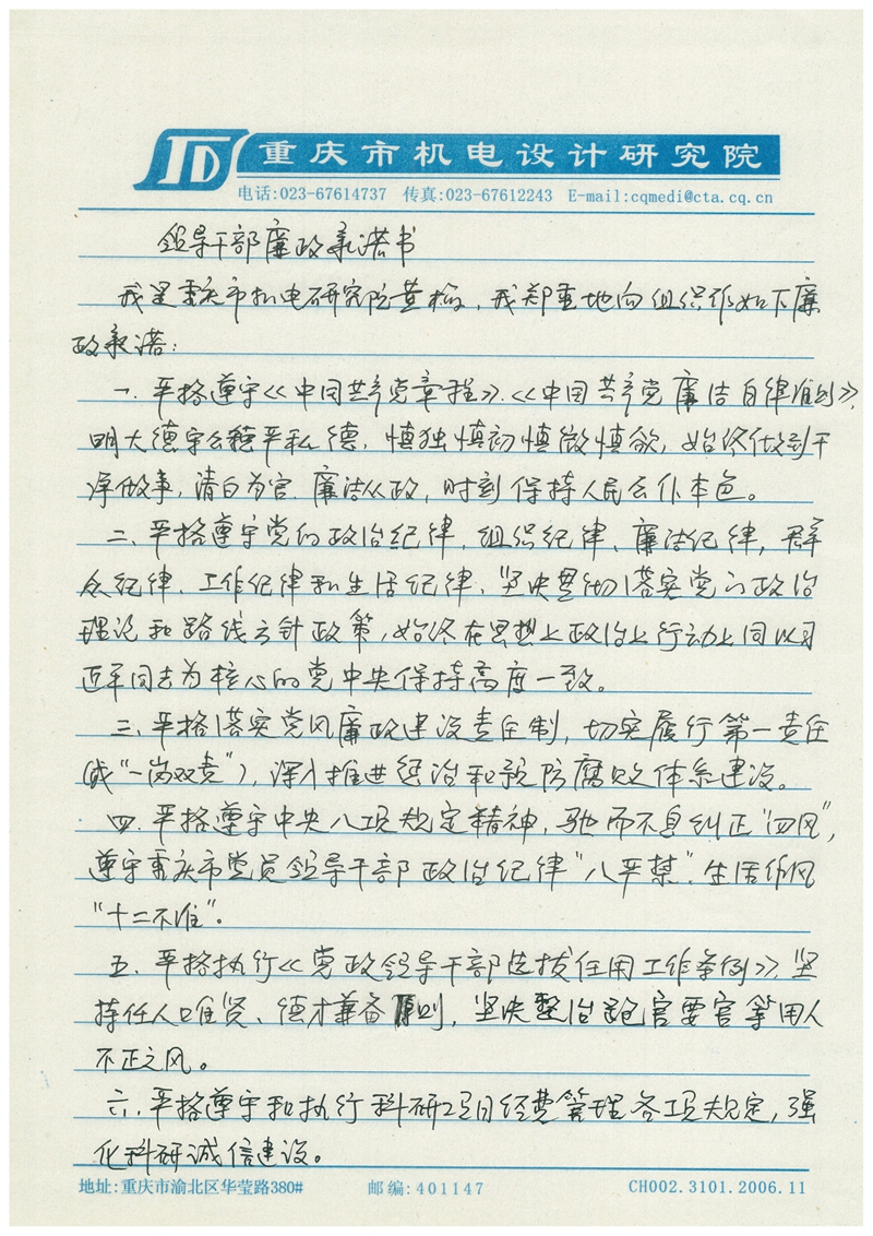 黄梅廉政承诺书