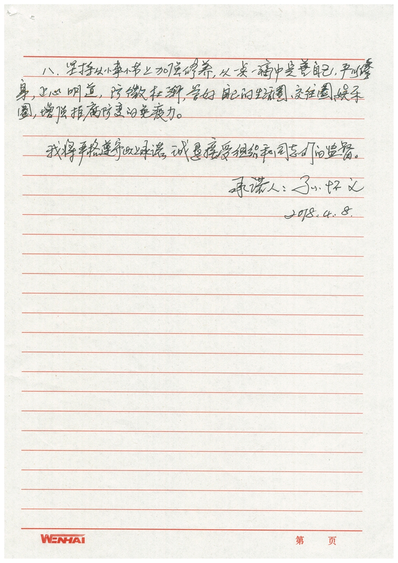 孙怀义廉政承诺书