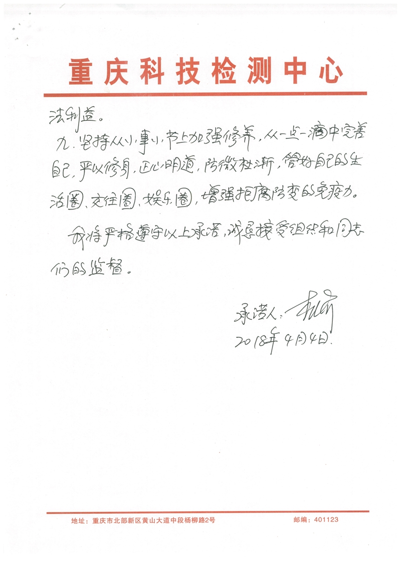 杜渝廉政承诺书