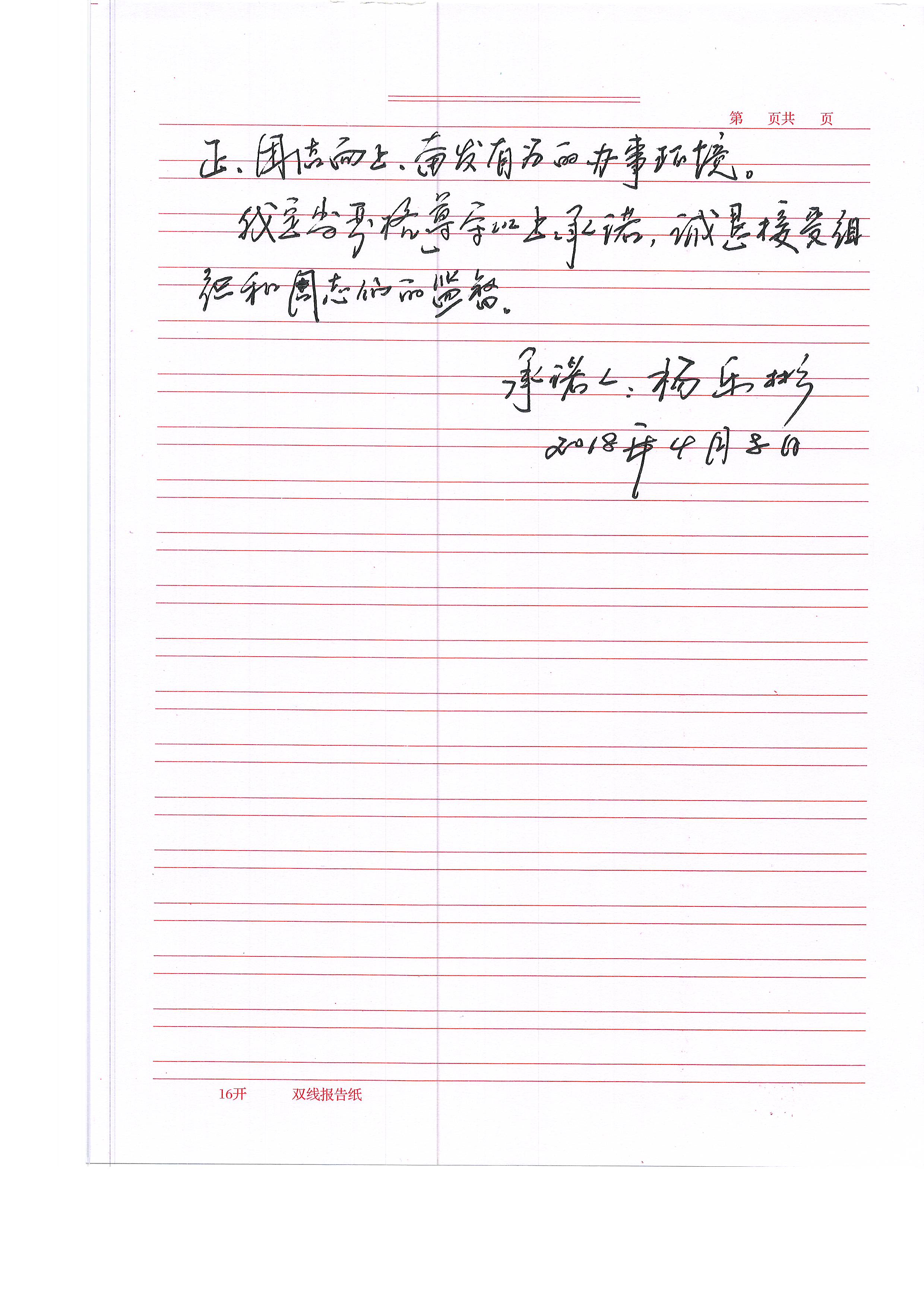 杨乐彬廉政承诺书