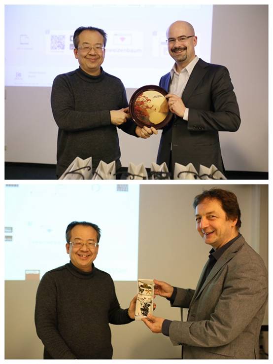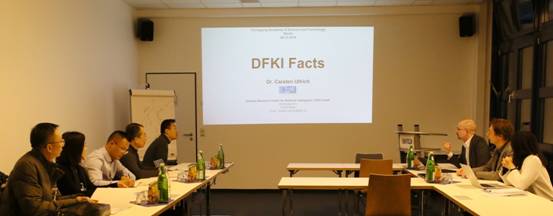 CarstenUlrich博士介绍了DFKI概况,以及正在开展的项目研发情况。Ulrich博士表示,德国人工智能研究中心(DFKI)是世界顶级的人工智能应用研究机构,创立于1988年,是德国首个以公私合作伙伴关系(PPP)模式建立的大型研究中心,也是目前世界上最大的非营利人工智能研究机构,其股东包括Google、Intel、 微软、宝马、SAP、Airbus在内的全球顶级科技企业。同时也受到欧盟、德国联邦教育和研究部、德国联邦经济事务与能源部、德国联邦政府以及德国研究基金的资助。DFKI主要开展应用性基础研究、产品功能及样品开发及提供专利方案等。研究方向覆盖人工智能的主要产业方向,包括大数据分析、知识管理、图像处理和机器学习、自然语言处理、人机交互及机器人。DFKI旗下大约有 900名科学家、研究人员及工程师。下属研究室主任均为德国大学的教授及全球多个精英研究机构管理委员会成员,有来自包括德国国家科学院、欧洲科学院、瑞士皇家科学院、德国自然与文学科学院、德国自然与工程科学院、柏林勃兰登堡自然与人类学科学院等知名科学院的院士。DFKI的CEO——沃夫冈•瓦尔斯特尔(Wolfgang Wahlster)教授是德国总理默克尔的科技顾问,也是“工业4.0”构想的三位发起者之一。Ulrich博士表示将认真研究与重科院合作相关事宜,尽快启动实质性合作项目。