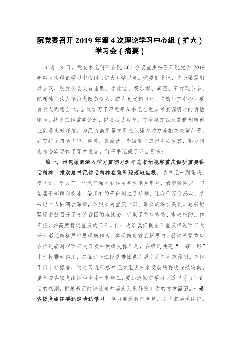 重科院党委2019年第4次理论学习中心组(扩大)学习会新闻(摘要)