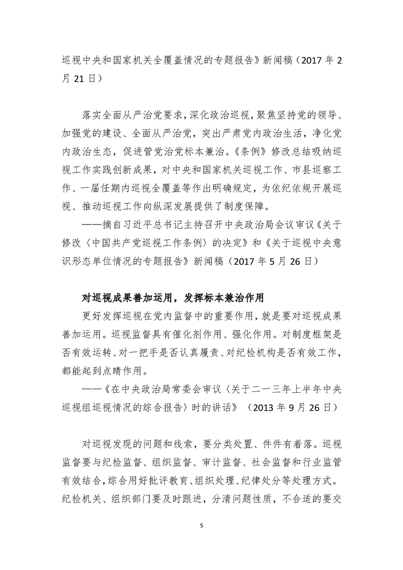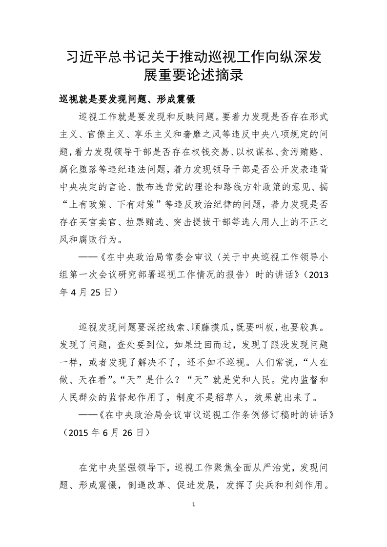 习近平总书记关于推动巡视工作向纵深发展重要论述摘录
