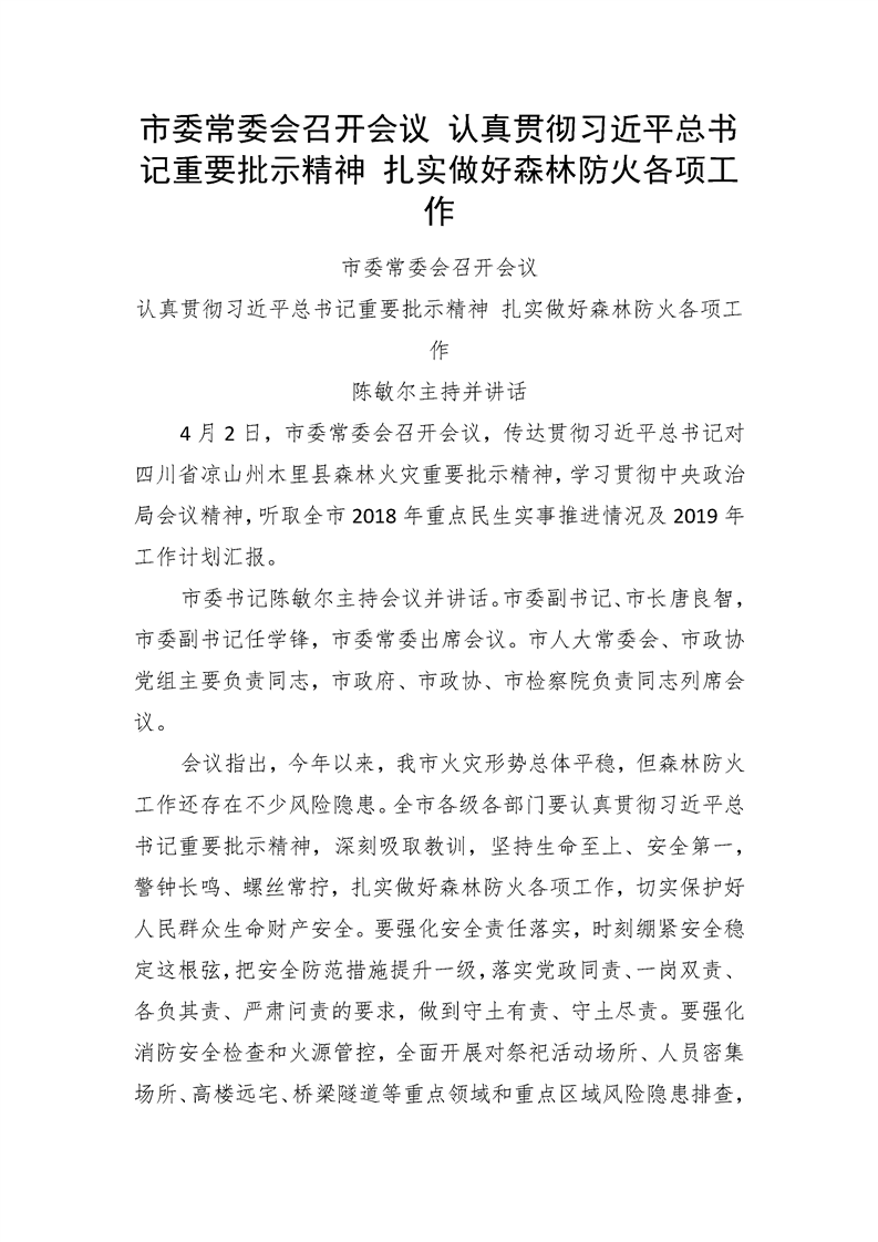 市委常委会召开会议 认真贯彻习近平总书记重要批示精神 扎实做好森林防火各项工作
