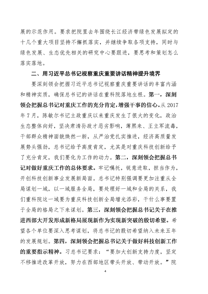 动员部署-党委书记何平在全院学习贯彻习近平总书记视察重庆重要讲话精神动员会上的讲话(摘要2019.5.9)