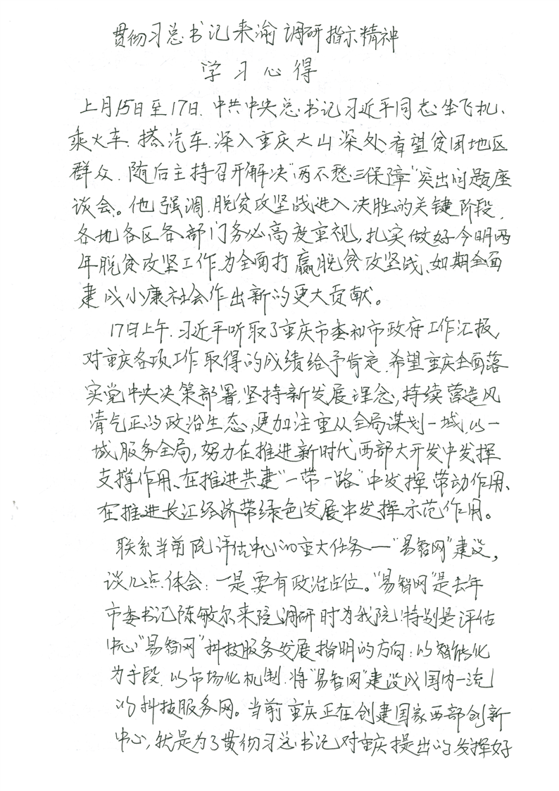 贯彻习近平总书记来渝调研指示精神学习心得 - 王联