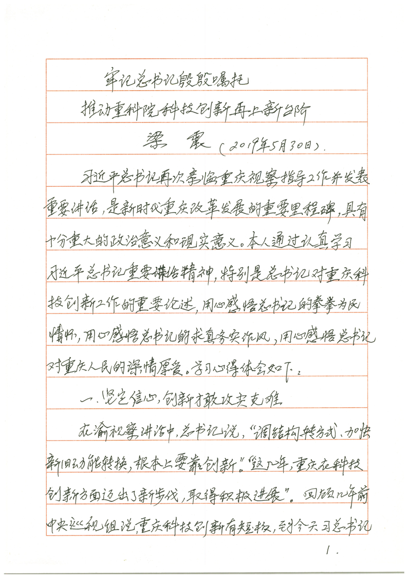 牢记总书记殷殷嘱托 推动重科院科技创新再上新台阶 - 梁震