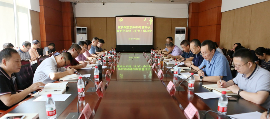 7月26日,院党委书记何平在院301会议室主持召开院党委2019年第19次理论学习中心组(扩大)学习会。院党委委员刘斌、李瑞雪、龚亮、石祥聪、杨建华参会,院属独立法人单位党政负责人、院内党支部书记、院属处室中心主要负责人列席会议,对《习近平总书记关于“不忘初心、牢记使命”重要论述选编》进行了深入学习,刘斌等三位同志作中心发言。
