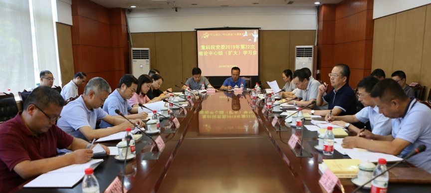8月23日,何平书记在院301会议室主持召开院党委2019年第22次理论学习中心组(扩大)学习会。党委副书记、院长梁震,副院长刘斌、李瑞雪,纪委书记曾学东,党委委员杨乐彬、龚亮、石祥聪,院属各单位党政主要负责人、机关各党支部书记、各处室(中心)、单位主要负责人等参会。会议学习了《习近平新时代中国特色社会主义思想学习纲要》关于新时代坚持总体国家安全观、关于新时代坚持“一国两制”和推进祖国统一、关于新时代中国特色大国外交等章节,学习了习近平总书记关于选人用人和党风廉政建设的有关重要讲话,学习了中国崛起令人振奋的案例,传达学习了市委陈敏尔书记在8月15日常委会上的讲话精神。梁震,石祥聪、段自力同志中心发言,杨乐彬等7名同志现场即席发言。