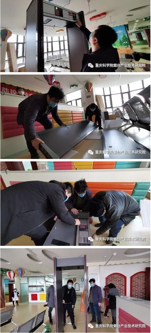 新冠病毒肺炎疫情发生以后,重庆科学技术研究院烟台产业技术研究院第一时间启动疫情应急科研攻关预案,组织成立专项研发小组,集中精力、协同攻关,结合一线防控需求,研发出红外人体测温仪、高精度体温检测门、公众智能消毒服务设备等系列智能抗击疫情创新产品。为尽快将研究成果应用到战胜疫情中,特殊时期,重庆科学技术研究院烟台产业技术研究院全院上下克服原材料供应不足、交通运输管制、人员分类限制等实际困难,顺利完成多功能高精度体温检测安全门产品研发生产并将首台研发产品捐赠属地。