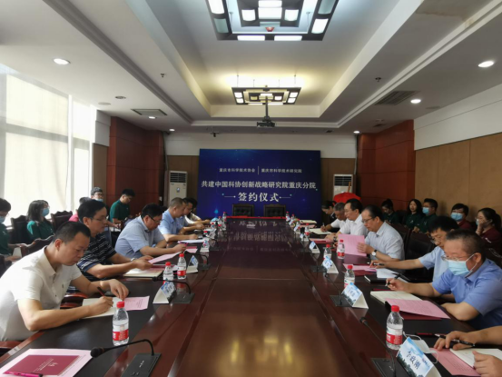 7月14日,我院与市科协举行共建中国科协创新战略研究院重庆分院(以下简称“重庆分院”)签约仪式。院党委书记何平,市科协党组书记、常务副主席王合清出席签约仪式并为重庆分院揭牌,院党委副书记、院长梁震与市科协党组副书记、副主席肖猛代表双方签署协议,双方领导见证签约。院党委委员、副院长刘斌出席签约仪式。市科协相关处室,院相关处室、中心和战略研究院主要负责人参加仪式。
