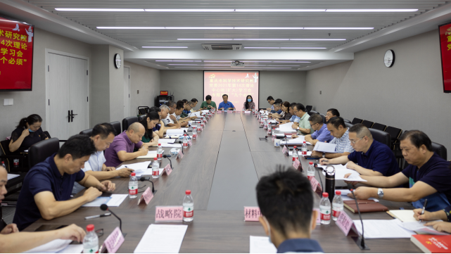 9月10日,院党委书记何平在重科智谷C座12楼三会议室主持召开院党委2021年第14次理论学习中心组(扩大)学习会,对习近平总书记在庆祝中国共产党成立100周年大会上的重要讲话以“九个必须”为专题进行了深入学习。党委副书记、院长梁震,党委委员李瑞雪、曾学东、杨乐彬、龚亮、石祥聪、杨建华,院属各单位党组织负责人,院机关各党支部书记,院属各单位行政主要负责人,各处室(中心)未任党支部书记的主要负责人参会。李瑞雪、石祥聪、袁先洪3位同志中心发言,梁震、李政刚、刘万伟、赵德4位同志即席发言。