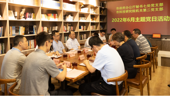 为深入贯彻市第六次党代会精神,推动党代会精神在基层党组织转化落地,6月15日下午,市政府办公厅秘书七处党支部与市科技研究院机关第二党支部在市科技研究院共同开展了支部主题党日活动。市政府原副秘书长、市政府参事王余果及市政府办公厅秘书七处党支部全体党员,市科技研究院党委书记何平,党委副书记、院长雷虹,副院长刘斌及院机关第二党支部全体党员参加活动。