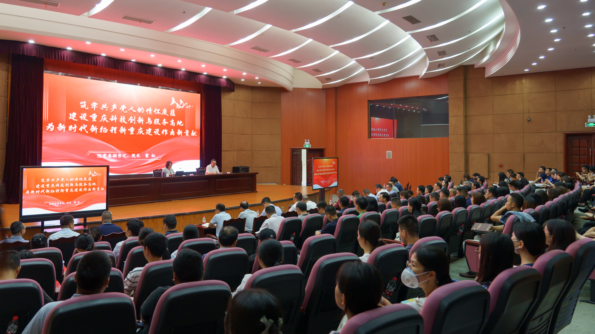 7月3日,根据主题教育工作安排,院党委副书记、院长雷虹以《筑牢共产党人的情怀底蕴,建设重庆科技创新与服务高地,为新时代新征程新重庆建设作出新贡献》为题,为院全体干部职工讲授专题党课,交流分享“共产党人的情怀”。
