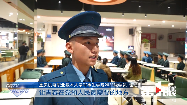 重庆机电职业技术大学军事生学院2023级学员谢明君说,作为新时代的青年学子,将牢记习主席的新年嘱托,践行“请党放心,强国有我”的誓言,让青春在党和人民最需要的地方绽放绚丽之花。