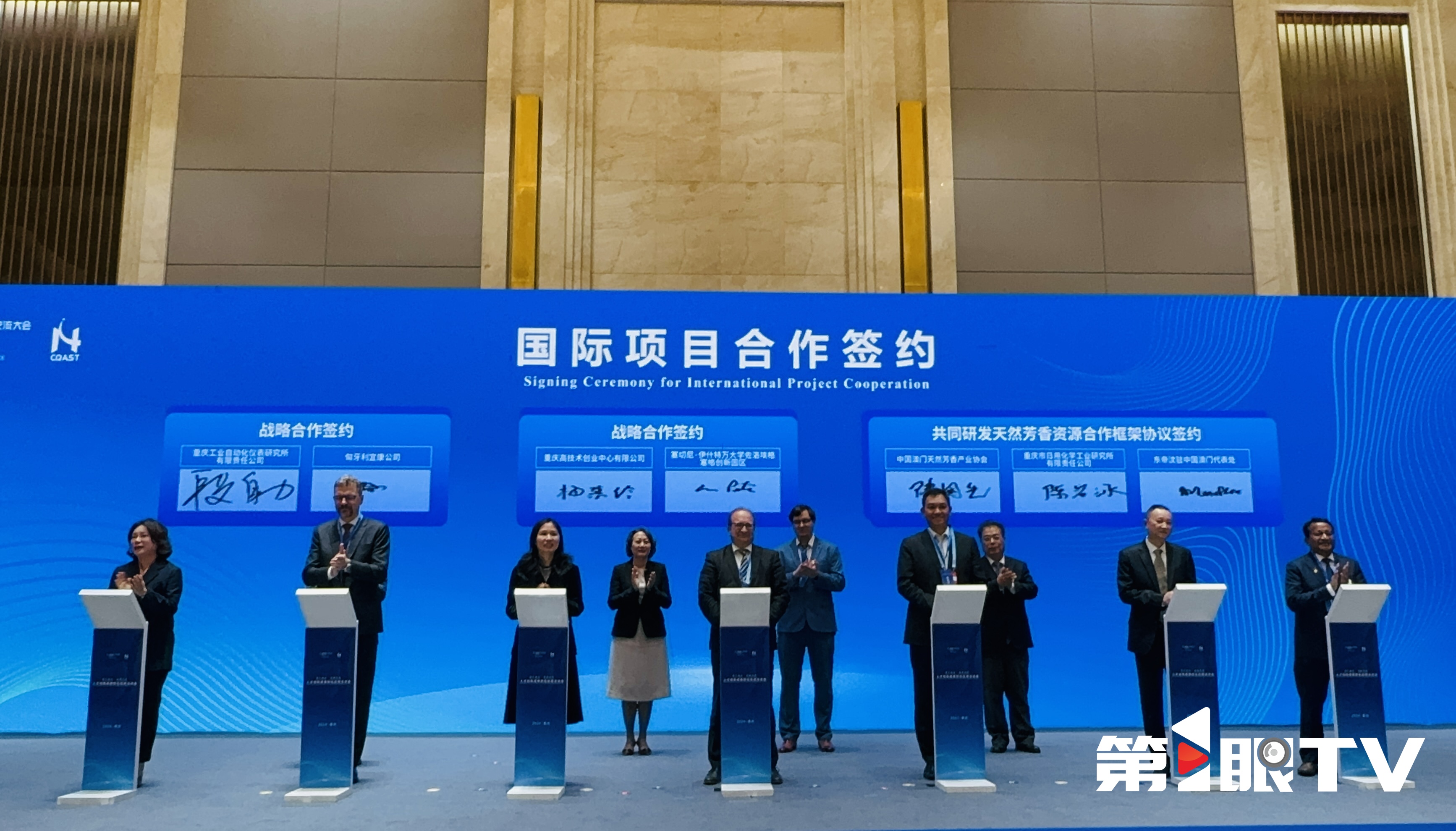 作为本次活动“重头戏”之一,现场还举行了多项国际合作项目的签约仪式,发布的国际人才创新成果,涵盖了新材料、生物医药、智能制造等多个领域。其中,重庆工业自动化仪表研究所有限责任公司与匈牙利宜康工程有限公司就双方技术转化应用、重庆高技术创业中心有限公司与匈牙利zalazone JKK实验室就产学研合作、重庆市日用化学工业研究所有限责任公司与澳门天然芳香产业协会就天然芳香资源研发签订了国际合作协议。