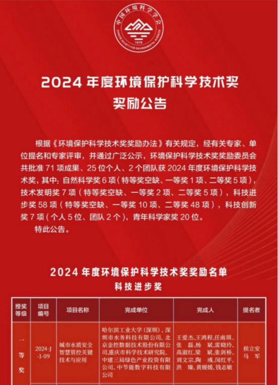 环境保护科学技术奖是我国环境保护科研领域中的重要奖项,根据国家科学技术奖励工作办公室公告而设立,旨在奖励在环境保护科学技术活动中做出突出贡献的单位和个人,促进环保科技事业发展。2024年度,共有58个项目获得环境保护科学技术科技进步奖,其中一等奖10项,二等奖48项。